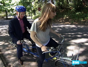 However, the best part of Project Runway last night was when Tim visited Leanne (now my pick to win). After meeting her adorable boyfriend, who, it seems, is Leanne in male form, Tim and Leanne take a little field trip. I think this picture says it all: